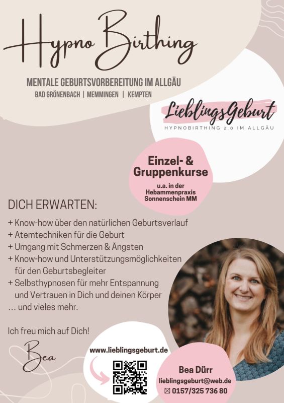 - HypnoBirthing 2.0 Einzel- & Gruppenkurse in der Hebammenpraxis Sonnenschein Memmingen, BindungsRaum Kempten und in Bad Grönenbach